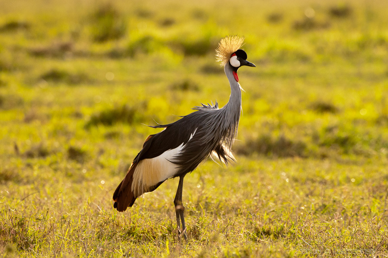 Gullkronetrane, (Grey Crowned Crane), i sin praktfulle positur