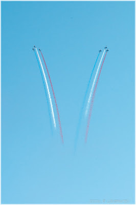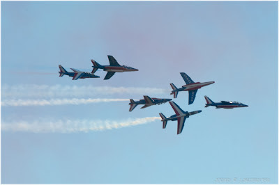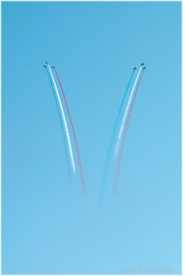 Så braket det løs med oppvisningens høydepunkt. Franske Patrouille de Francemed sine 9 Alpha Jet. (8stk i oppvisningen. Ett i reserve. Kjekt å ha). De er et av verdens beste oppvisningsteam, så her var det bare å nyte og fotografere så mye en orket.